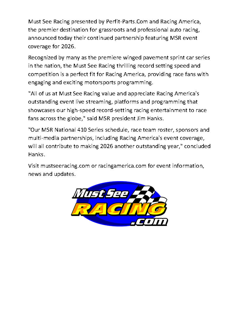 PERFIT- PARTS.COM and MUST SEE RACING CONTINUE PARTNERSHIP IN 2026